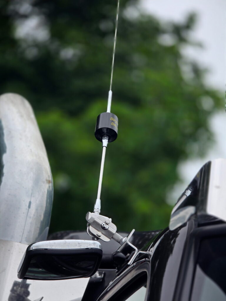 If you don’t have West Coast mirrors, or you don’t have an antenna mount out the back of the cab, you’re not fuked and there is an alternative. When the mirror arm is at the level of your belly button level and the antenna is mounted in that arm, that is about the WORST setup to get your SWRs correct and to get your signal out.